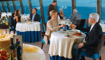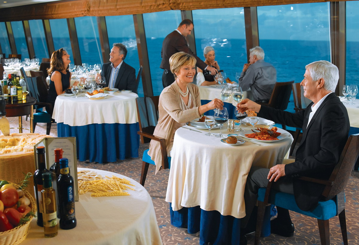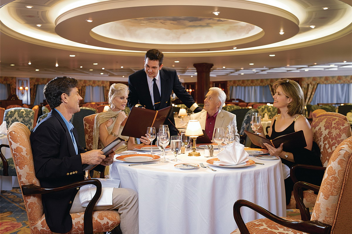Каждый корабль предлагает гибкость открытого питания в четырех элегантных ресторанах, в которых не требуется никаких доплат. Более того, все прохладительные, безалкогольные напитки, бутилированная вода, эспрессо, капучино, чай и кофе абсолютно бесплатны. Каждое блюдо неизменно представляет собой произведение искусства. Однако эти рестораны высокой кухни не предъявляют высоких требований к своим гостям: совсем не обязательно спускаться к ужину в вечернем платье или галстуке – дресс-код, за исключением особо объявленных случаев, остается на усмотрение пассажиров.