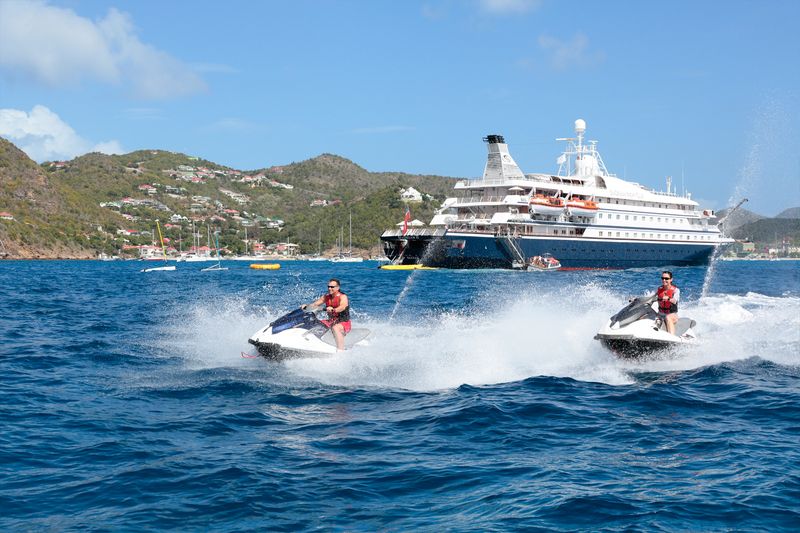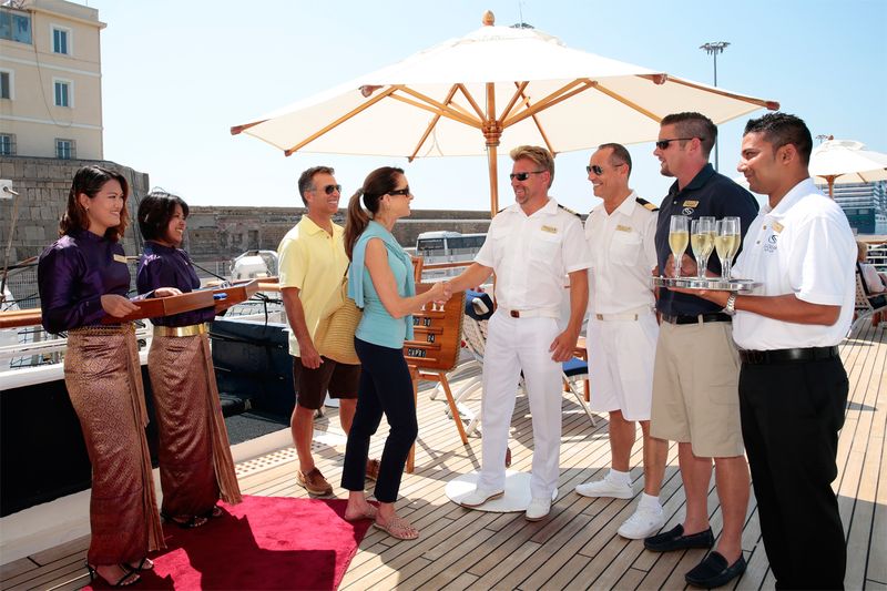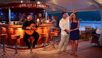 - Икра и шампанское в Вашем распоряжении на протяжении всего круиза (как, впрочем, и любое другое спиртное – за исключением, разве что, коллекционных марок), однако особенно запоминается ритуал сервировки икры с шампанским в бассейне – или прямо в море во время барбекю на пляже – неизвестно, что звучит громче: выскакивающие из бутылок пробки или затворы фотоаппаратов!