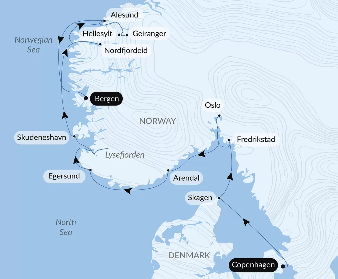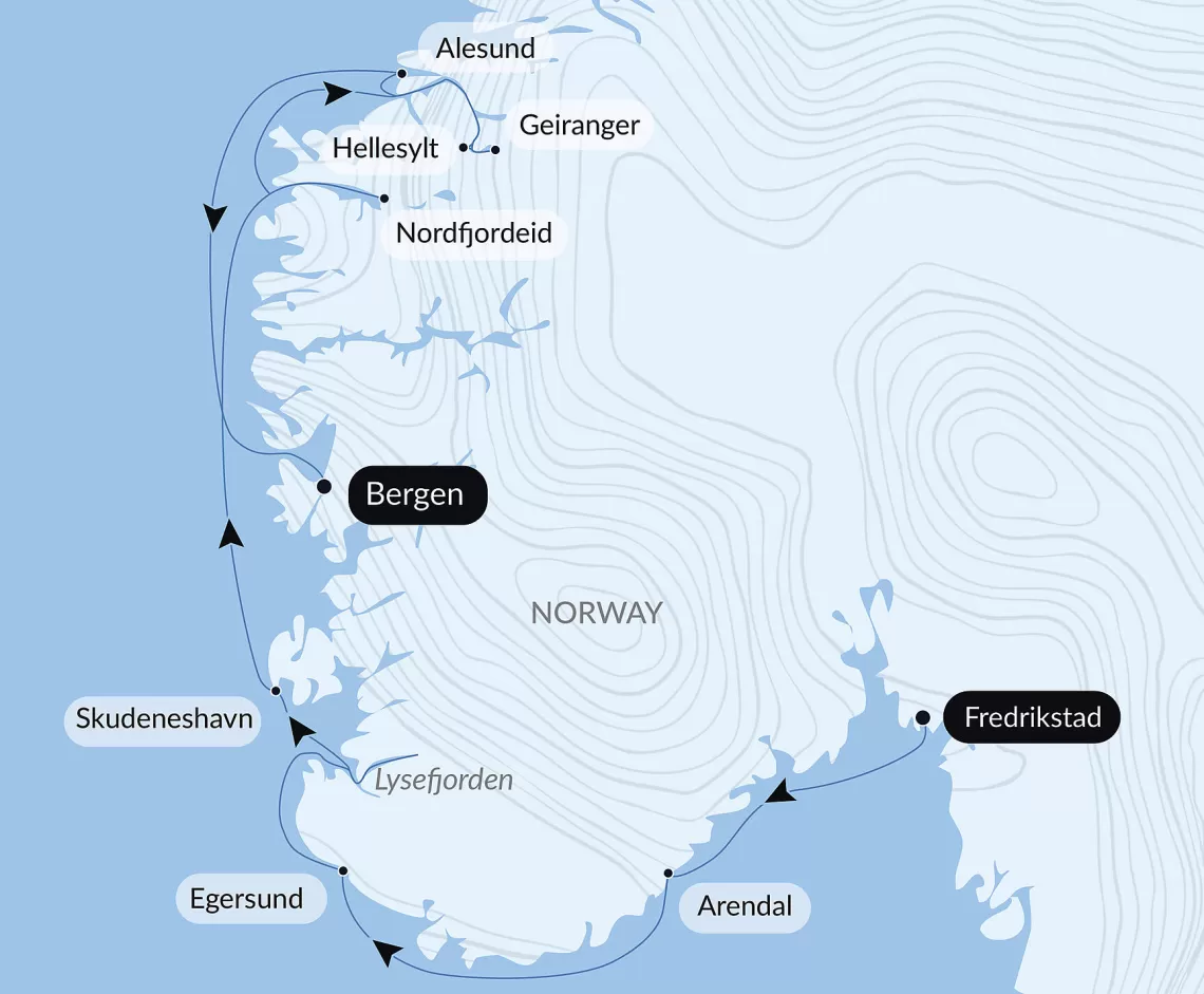 Небольшая деревня Хеллесильт является старинным портом викингов на северо-западном побережье Норвегии. Потоки ледниковых вод падают здесь на гранитовые скалы и пополняют воды фьордов. Огромные водопады, заснеженные вершины гор, озера и кристально чистые ледники вдохновили Генрика Ибсена к написанию его шедевров. Здесь же находится самое глубокое озеро Европы кристально чистое Хорниндал глубиной 1600 футов. Особой популярностью у любителей гор пользуется озеро Стрин, славящееся своими бирюзовыми водами. Интересным бывает посещение национального парка Йостедал, в котором организованы 3D выставки ледников, флоры и фауны.