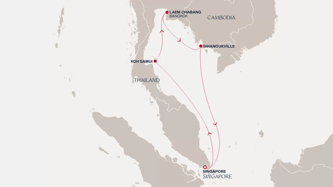 Маршрут круиза: Сингапур - море - Ко Самуи - Лаем Чабанг / Бангкок - Лаем Чабанг / Бангкок - Сиануквиль - море - Сингапур