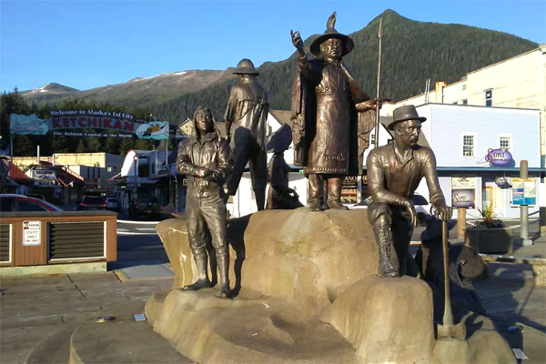 Кетчикан основывался в качестве индейской рыбной солильни, но развился он только когда стал базой снабжения и главным портом прибывания золотоискателей к району Клондайк в 1898 году во времена "Золотой лихорадки". Многое из яркого прошлого города до сих пор остается очевидным, особенно в расположенных поблизости индейских деревнях, в которых можно увидеть красочные резные тотемные столбы и услышать восхитительные легенды, окружающие их. Несмотря на то, что самым популярным спортом в Кетчикане является рыбалка, здесь есть множество других мероприятий, в которых туристы с удовольствием принимают участие. На самом деле, одним из самых лучших способов посмотреть местность и насладится природой является пешая прогулка по городу до Центра Тотемного наследия. Здесь, Вы сможете ознакомиться с тотемными столбами и увидите просто потрясающие экземпляры. Взгляните на настоящие гранитные скалы, падающие с высоты в 1000 футов водопады, кристально чистые озера и стелящиеся туманы фьордов с гидросамолетов. Отправляйтесь в плавание на каяках к прекрасному острову Татуш, где можно взглянуть на орлов, тюленей и морских львов. Для любителей природы будет интересно отправиться в приключенческую поездку в поисках черного медведя, который обитает в этих местах. Посетите известный Внутренний канал Аляски во время тура на велосипедах. Не забудьте взять приключенческий дух, любознательность и фотоаппарат. Можно принять участие в джип-сафари к озерам Аляски, по которым можно прокатиться на каноэ. Береговая зона Кетчикана является доком и располагается неподалеку от центра города, но если в порту находится большое количество кораблей, то организуется доставка круизеров прямо в центр города на тендерах.