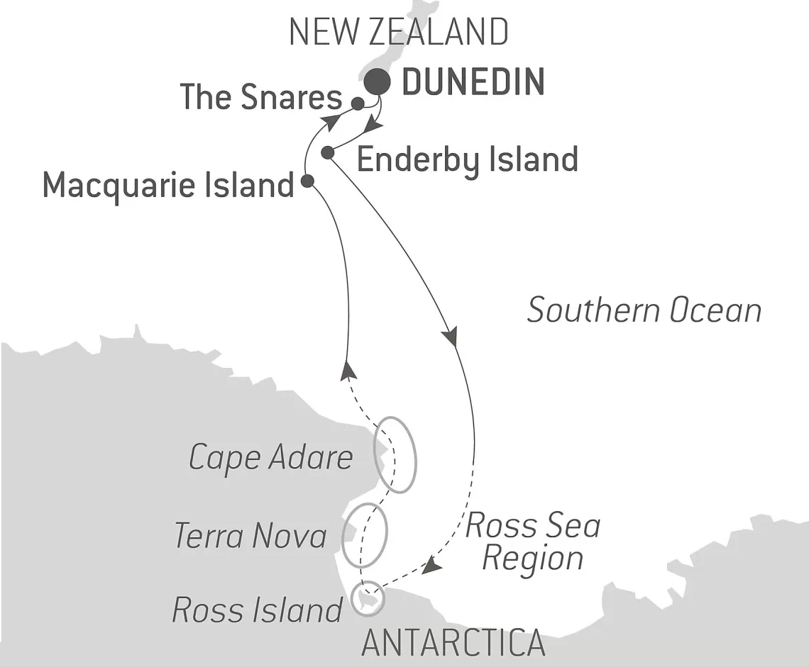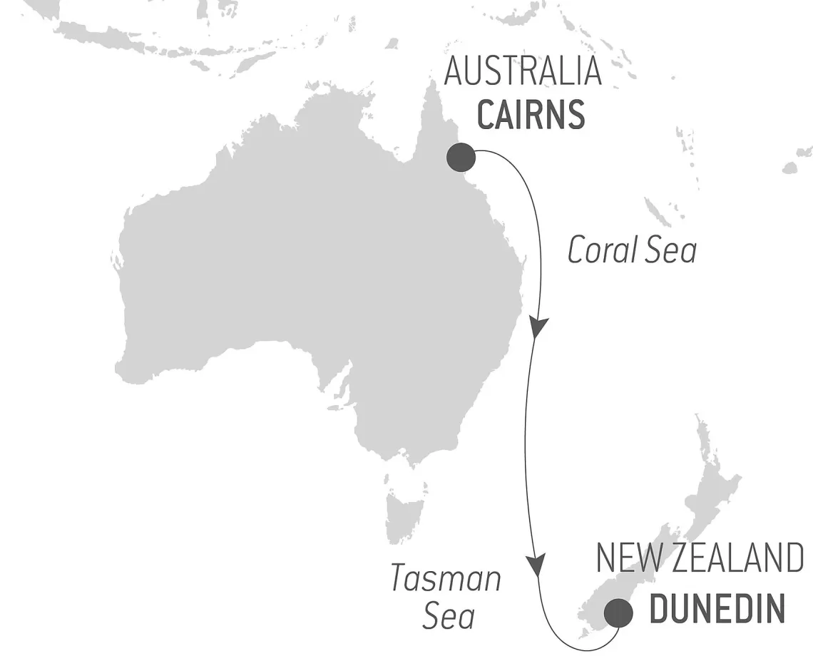 Маршрут круиза: Генуя / Милан - Марсель - Барселона - море - Гибралтар - Касабланка - море - море - море - Минделу, о. Сан-Висенте - море - море - море - море - Сальвадор - море - Рио-де-Жанейро - Рио-де-Жанейро - море - море - Буэнос-Айрес - Буэнос-Айрес - море - море - Пуэрто-Мадрин - море - Порт-Стэнли - море - море - Ушуайя - Ушуайя - море - море - Пуэрто-Монт - море - Вальпараисо / Сантьяго - Вальпараисо / Сантьяго - море - море - море - море - Ханга-Роа, о. Пасхи - море - море - Баунти-Бэй - море - море - Папеэте, о.Таити - Папеэте, о.Таити - о. Муреа - море - Атолл Аитутаки - о. Раротонга - море - море - море - море - море - Бэй-оф-Айлендс - Окленд - Тауранга - море - Литтелтон / Крайстчерч - Данидин - Милфорд-Саунд - море - Хобарт - Хобарт - море - Сидней - Сидней - море - море - Нумеа - море - Луганвилл - море - море - море - Апиа, о. Уполу - Паго-Паго, о. Тутуила - море - море - море - море - море - Гонолулу, о. Оаху - Хило, о. Биг-Айленд - море - море - море - море - море - Лос-Анджелес - море - море - Кабо-Сан-Лукас - море - море - море - Пунтаренас - море - Панамский канал - Панамский канал - море - Очо-Риос - море - море - Род-Таун, о. Тортола - Филипсбург, о. Синт-Мартен - море - море - море - море - море - море - Лас-Пальмас, о. Гран-Канария - море - море - о. Майорка - море - Неаполь / Помпеи - Чивитавеккья / Рим - Генуя / Милан - Марсель - Таррагона - море - море - Ла-Корунья - Бильбао - Ла-Рошель - Брест - море - море - Варнемюнде / Берлин
