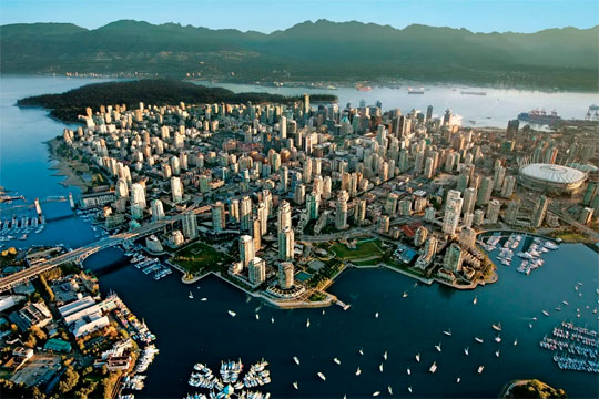Ванкувер – коммерческая (хотя не административная) столица Британской Колумбии, расположенная на крайней точке юго-запада Канады, всего в 40 км от границы США. Город имеет репутацию одно из самых красивых городов мира. Центр Ванкувера расположен на полуострове в Проливе Джорджия и связан с северной частью города Заливом Буррард - глубоким фьордом, уходящим далеко внутрь материка.