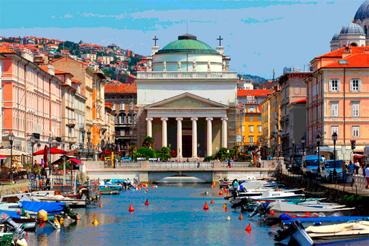 Город Триест в Италии расположен на северо-востоке страны, в непосредственной близости от границы со Словенией. Это не только крупный порт, снабжающий Италию кофе, но и весьма самобытное туристическое место, где смешались сразу несколько культур: итальянская, славянская и германская (город свыше 600 лет входил в состав Австро-Венгрии).