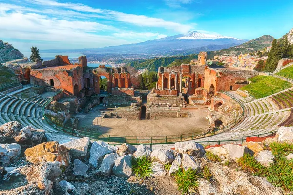 Город Таормина расположен вдоль северо-восточного побережья Сицилии, в заливе Катании, возвышаясь над горой Этна. Стратегическое расположение города помогло отразить множество оккупаций, в том числе греками, романцами и финикийцами. Первыми, кто населял территорию современной Таормины, были греки, они-то и построили здесь большой театр. Позже театр был переделан Романцами, которые контролировали всю Сицилию в середине III века до н.э. В средневековье Таормина преуспела в торговле, к тому же к многоквартирным домам и прекрасным дворцам построили публичные постройки в центре города. Для тех, кто захочет поплавать, рекомендуется отправиться на пляжи курорта Джардини Наксос, расположенные всего в 8 км от города.