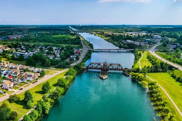 Уэллендский канал, расположенный возле города Сент-Катаринс, связывает четыре Великих озера с морским путем святого Лаврентия и озером Онтарио. По каналу ежегодно проходят 3 000 судов длиной до 234 метров.