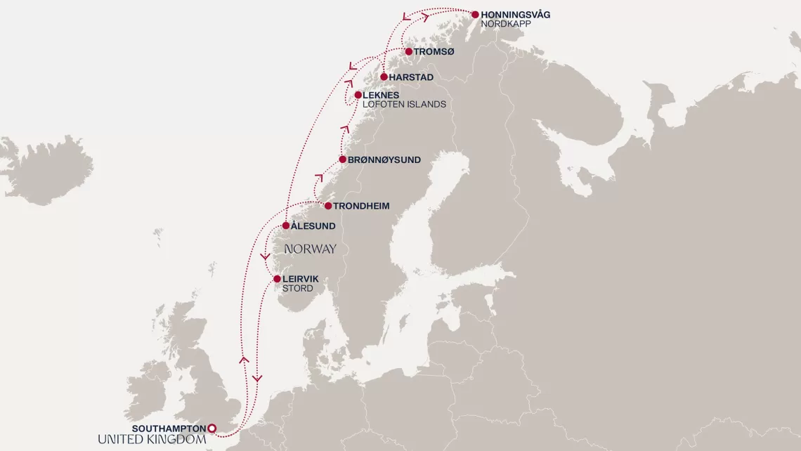 Маршрут круиза: Саутгемптон / Лондон - море - Леруик, о. Мейнленд - - Нордфьордэйд - Ставангер - море - Саутгемптон / Лондон
