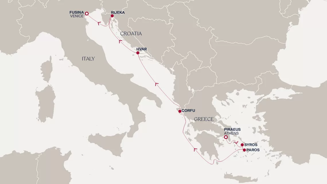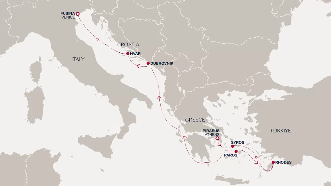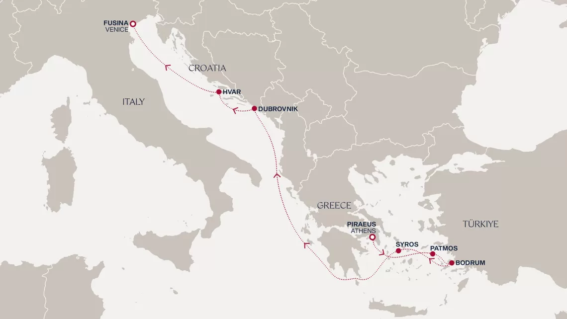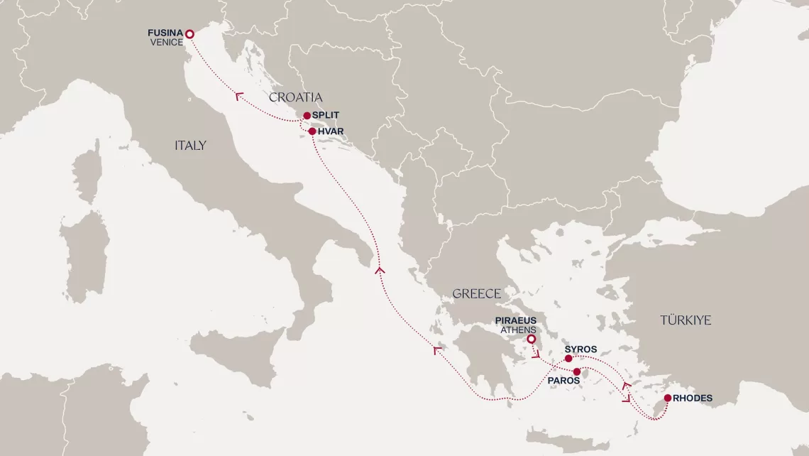 Порт расположен в центре города Эрмуполи. Посетители могут исследовать извилистые улочки столицы и полюбоваться неоклассической архитектурой, старинными аристократическими особняками и белыми домами, спускающимися по склонам холмов до самого порта.