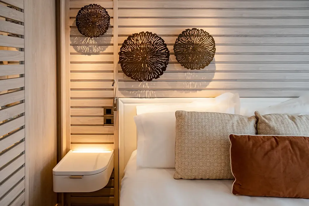 Расположение каюты можно посмотреть на плане палуб во вкладке "Круизный лайнер" на странице выше. Первые цифры номера каюты - номер палубы. Каюты отмеченные "для инвалидов" могут быть заменены MSC на каюту той же категории с другим расположением на лайнере без согласования с Клиентом.