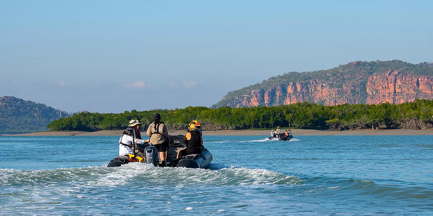 | На острове Джар расположены древние наскальные галереи, выполненные в стиле Гвион Гвион, уникальном для региона Кимберли. Долгое время этот стиль игнорировался или оставался неизвестным европейским исследователям культуры аборигенов в Кимберли, уступив место более драматичному искусству Ванджина. Однако в последнее время искусство Гвион Гвион получило международное признание. Считается, что оно может происходить от более чем 30 000 лет до нашей эры и представлять собой первую волну морских колонизаторов австралийского континента. Таким образом, это самые древние подробные изображения человеческих фигур в мире. Присоединитесь к вашей экспедиционной группе на берегу для короткой прогулки мимо некоторых захватывающих скальных образований к месту расположения художественных галерей Гвион Гвион. Дополнительное описание Ванситтарт Бэй >>> |