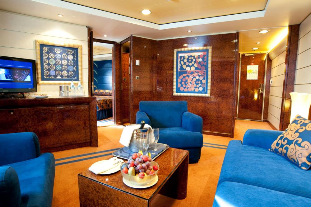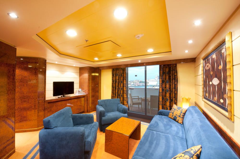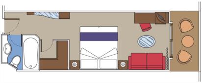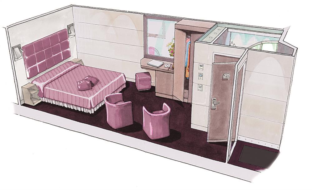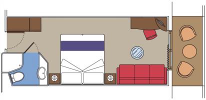 Площадь каюты: ~ 38-41 м2 (балкона ~ 4-6 м2)