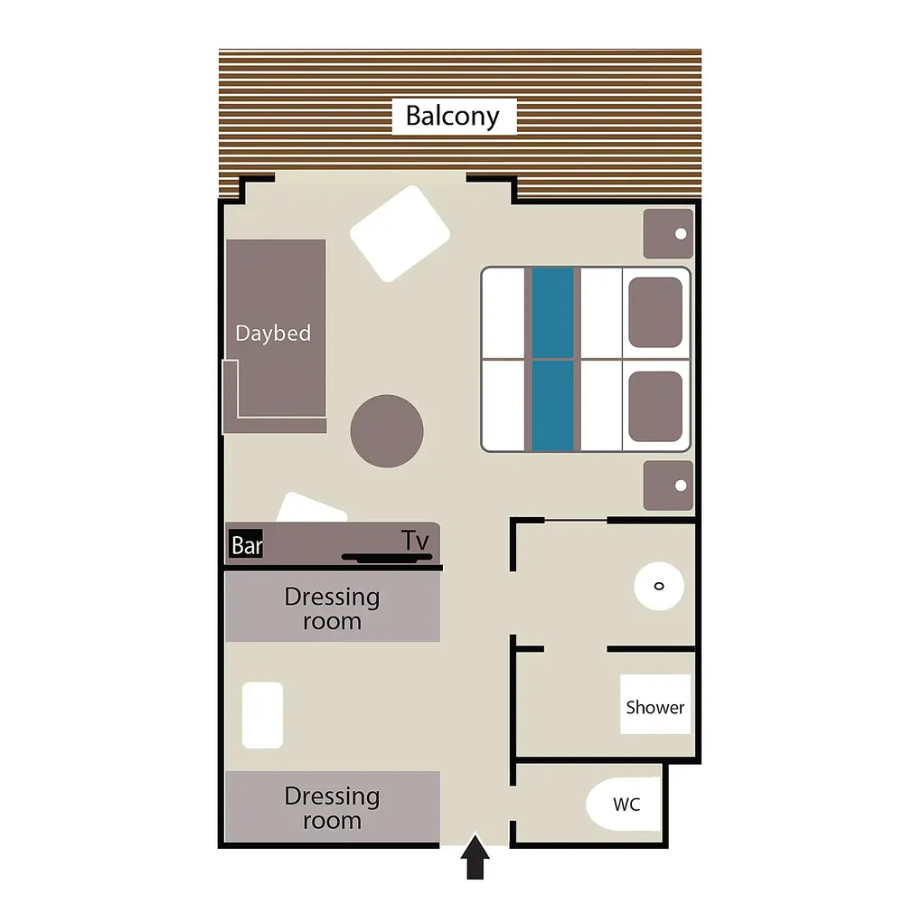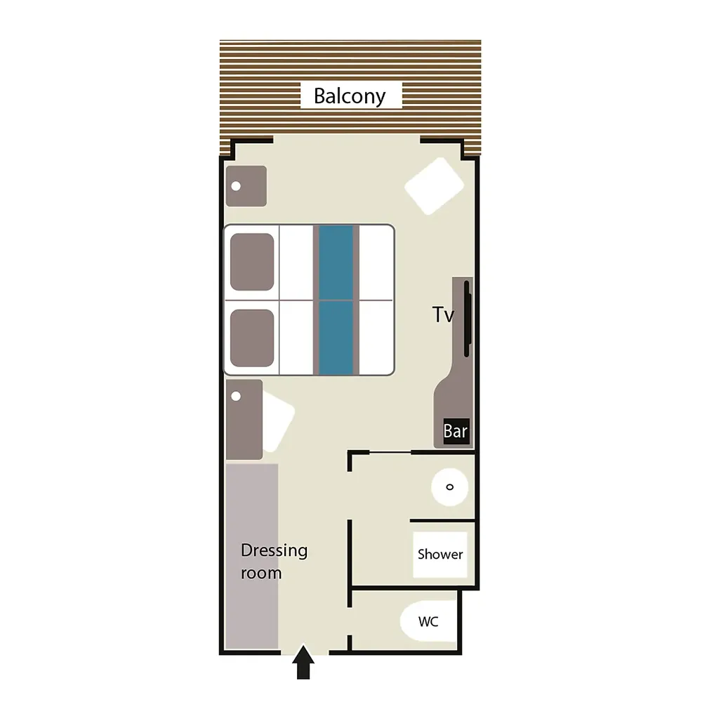 Площадь каюты: ~ 27 м2 (балкона ~ 5 м2)