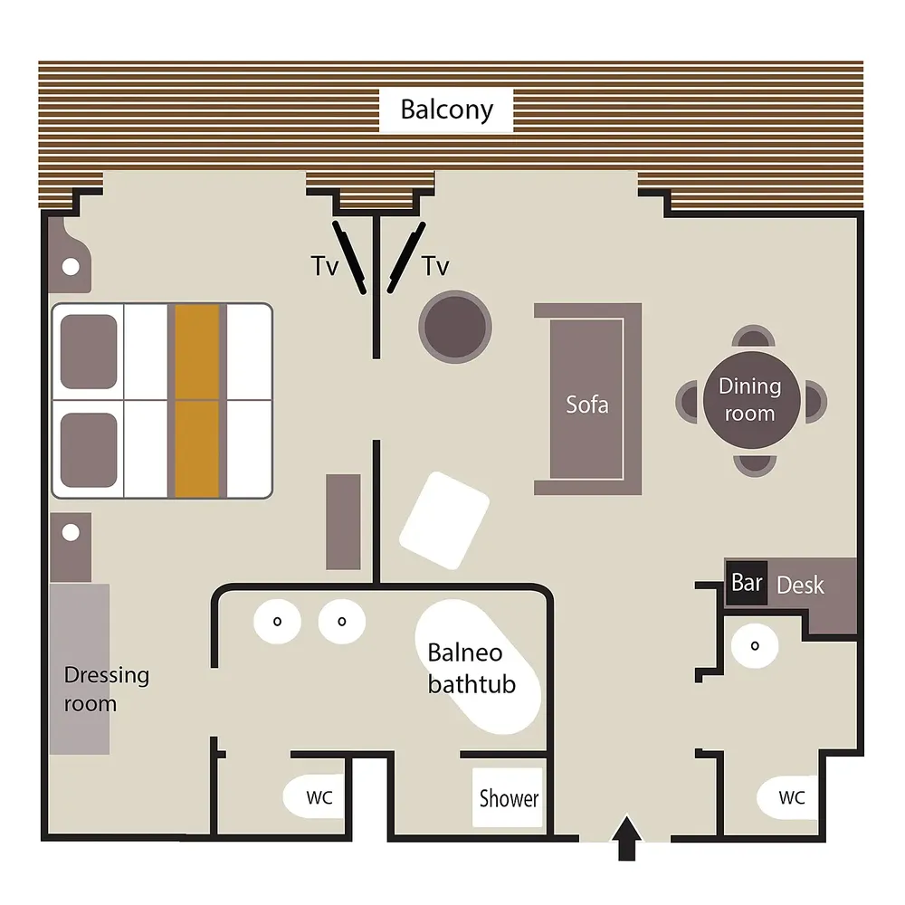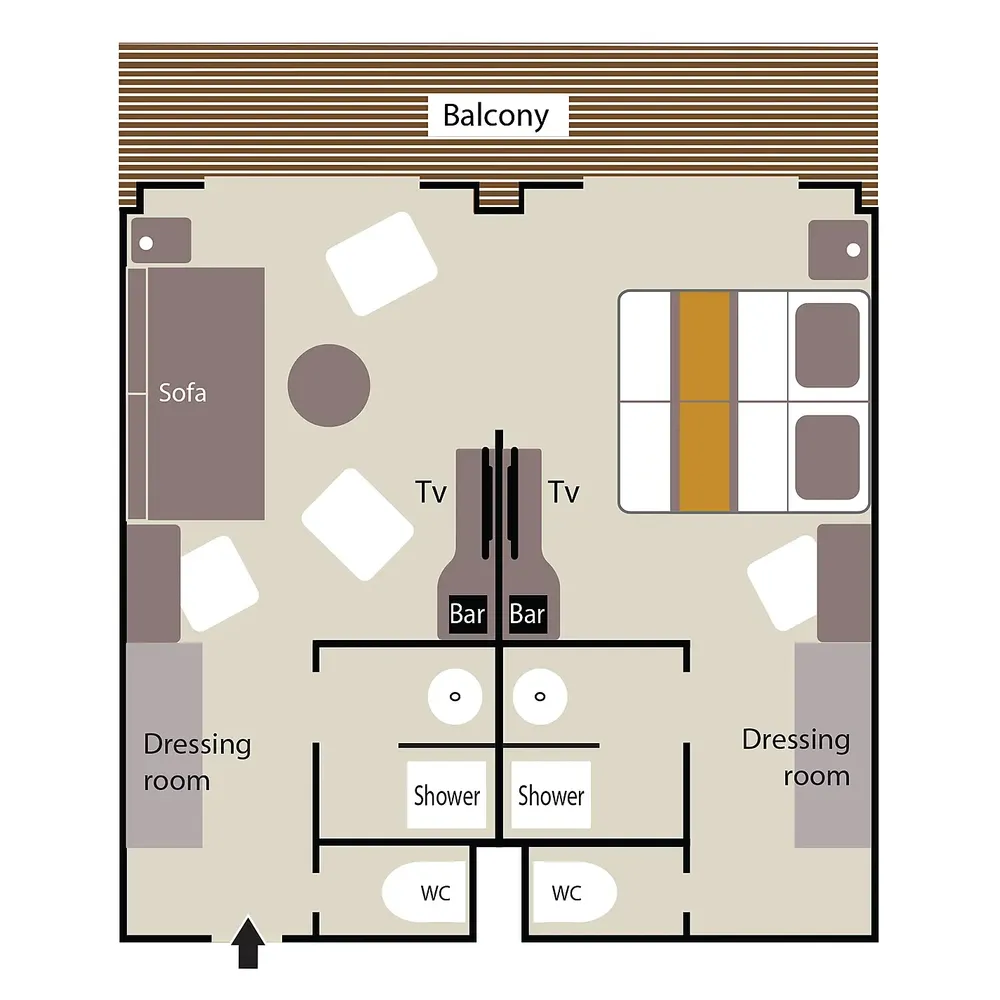 Площадь каюты: ~ 45 м2 (балкона ~ 9 м2)
