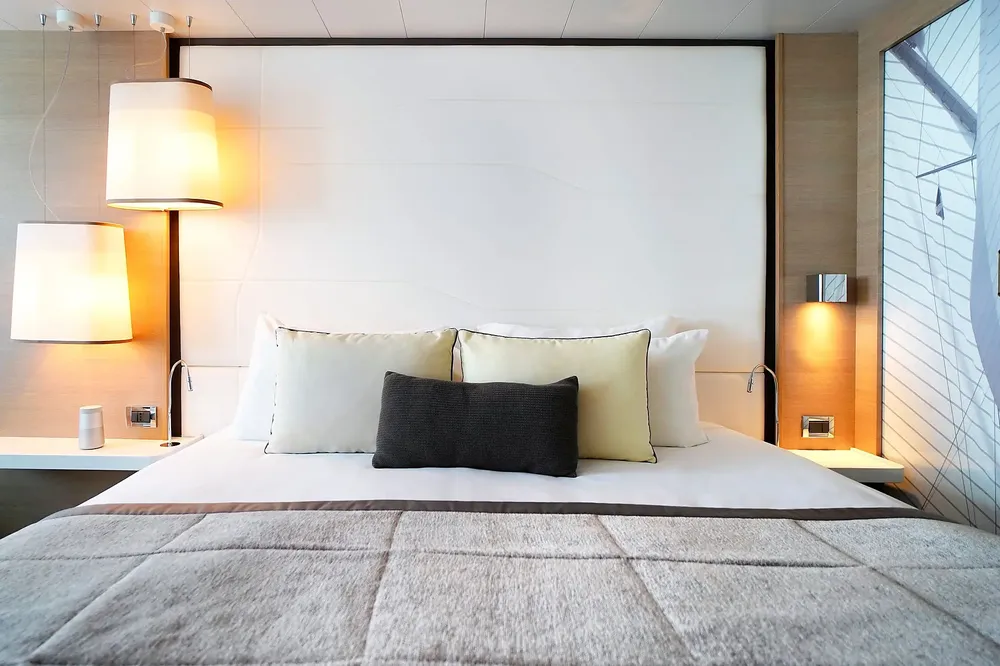 • Спальня с одной кроватью размера "king-size" (180 х 200 см) или двумя односпальными кроватями (90 х 200 см)