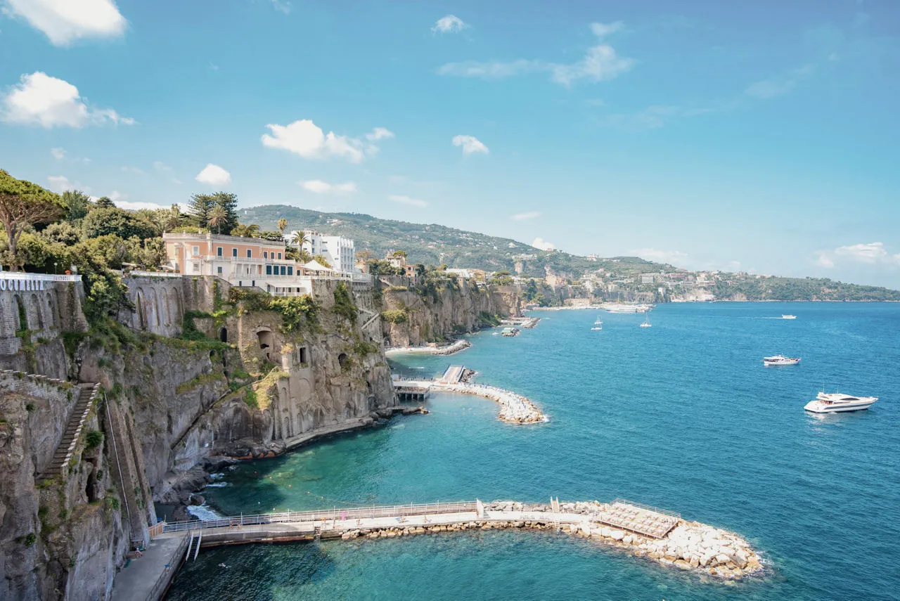 Отсюда можно также насладиться одним из самых захватывающих прибрежных видов в Италии, отправившись в путешествие по живописным деревушкам побережья – Амалфи, Позитано и Равелло. Полуостров Сорренто лежит вдоль берегов Неаполя в границах южного итальянского региона Кампанья. История Кампаньи  берет свое начало в XI веке до н.э., за тысячи лет до основания Рима.