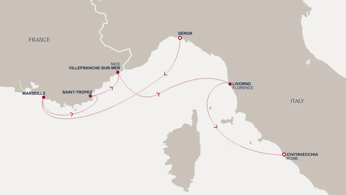 Маршрут круиза: Палермо, о. Сицилия - Валлетта - море - Барселона - Марсель - Ливорно / Флоренция, Пиза - Кальяри, о. Сардиния - Палермо, о. Сицилия
